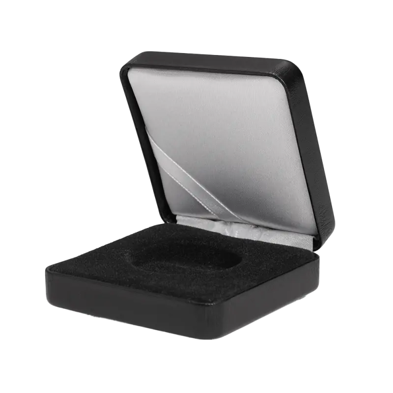 Geef je verzamelde munten een stijlvolle presentatie met deze luxe muntdozen. De doos is voorzien van een zijdezachte voering en een inleg van zwart fluweel voor een elegante uitstraling. Binnenin de deksel bevindt zich een satijnen lint waar je een persoonlijke boodschap kunt plaatsen. De stevige metalen frame beschermt de munt en is geschikt voor capsules met een binnendiameter van 29-30 mm. Productnummer: P0298. Let op, producten kunnen iets afwijken van de getoonde afbeelding. Laat een review achter en deel jouw ervaring!