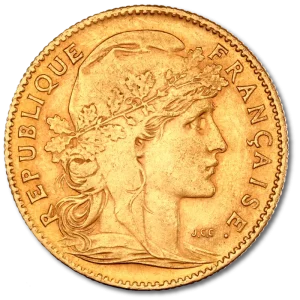 10 French Francs Marianne Rooster Gold Coin | 1899-1914