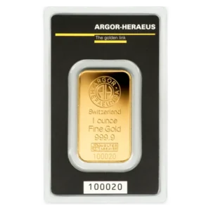 Ontdek de prachtige 100g Gold Bar van Argor-Heraeus! Deze Zwitserse producent, opgericht in 1951, staat bekend om zijn hoogwaardige goudstaven die volledig verhandelbaar zijn in banken en LBMA-geregistreerd. De goudstaaf is voorzien van het fabriekslogo, de fijnheid "999.9", het gewicht "100 g" en een uniek serienummer. Met afmetingen van 49.7 x 28.5 x 3.9 mm heeft deze rechthoekige staaf met afgeronde hoeken een elegante uitstraling. Voeg deze waardevolle toevoeging toe aan je portfolio en bestel hem gemakkelijk en snel bij Goldbase. De goudstaaf wordt geleverd in een blisterverpakking ter bescherming en wordt geleverd met een echtheidscertificaat. Laat deze kans niet liggen en investeer vandaag nog in deze prachtige Argor-Heraeus goudstaaf!