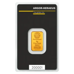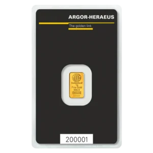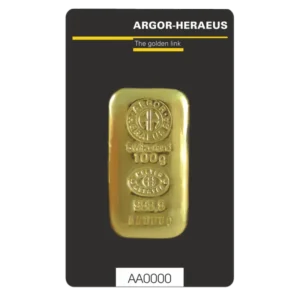 Ontdek de prachtige 100g Gold Bar van Argor-Heraeus! Deze Zwitserse producent, opgericht in 1951, staat bekend om zijn hoogwaardige goudstaven die volledig verhandelbaar zijn in banken en LBMA-geregistreerd. De goudstaaf is voorzien van het fabriekslogo, de fijnheid "999.9", het gewicht "100 g" en een uniek serienummer. Met afmetingen van 49.7 x 28.5 x 3.9 mm heeft deze rechthoekige staaf met afgeronde hoeken een elegante uitstraling. Voeg deze waardevolle toevoeging toe aan je portfolio en bestel hem gemakkelijk en snel bij Goldbase. De goudstaaf wordt geleverd in een blisterverpakking ter bescherming en wordt geleverd met een echtheidscertificaat. Laat deze kans niet liggen en investeer vandaag nog in deze prachtige Argor-Heraeus goudstaaf!
