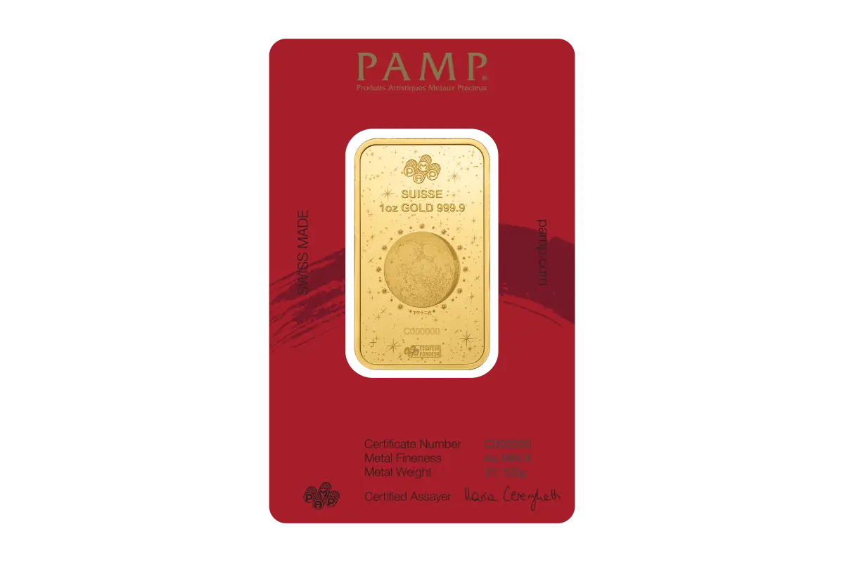 Specificaties van de 1oz Gouden Staaf | PAMP | Jaar van het Paard (1000 mijl) | 2026: